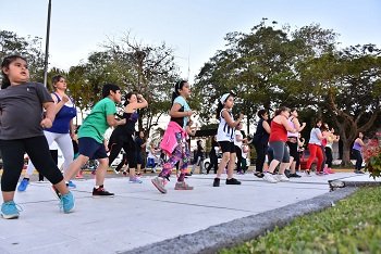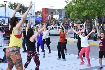 La rutina de baile y ejercicios aeróbicos, este domingo 30, se ubicó en el mástil municipal y visitó el Circuito 5.